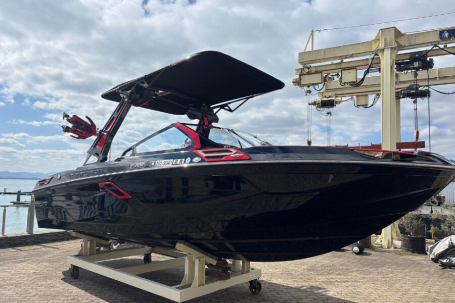 ウェイクサーフィンの世界大会でも公式競技艇として使用されているトーイングボート。
