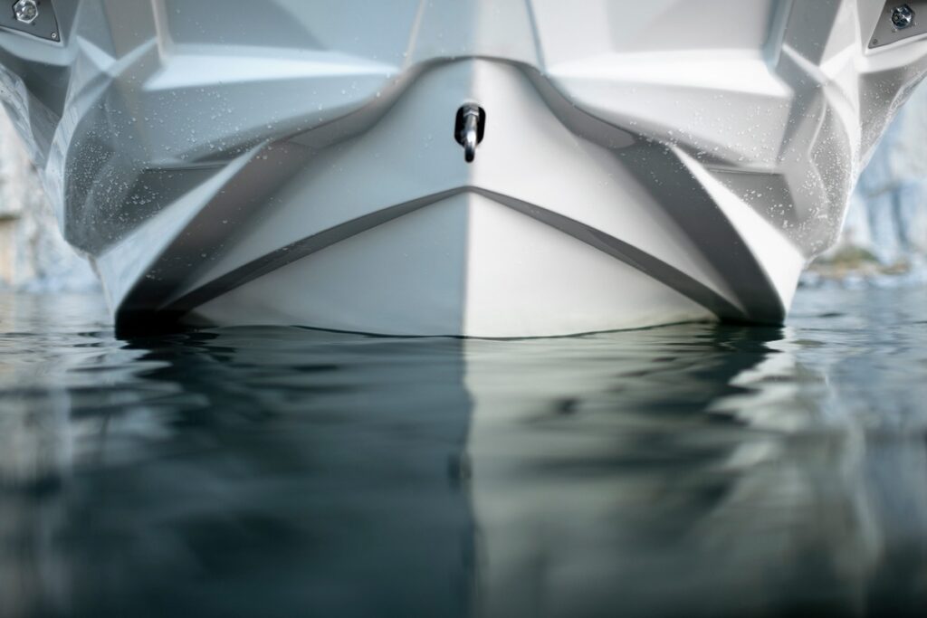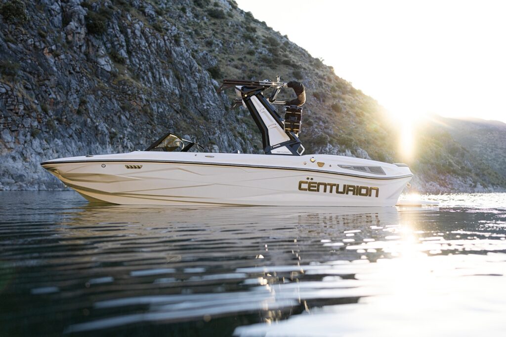 荒れた水面でも安定し、少ない重量で大きな波をつくれるセンチュリオン独自の設計。
